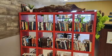 Have extra time on your hands? Why not come sit and read a book? We have several bookshelves full of books and sorted by category.